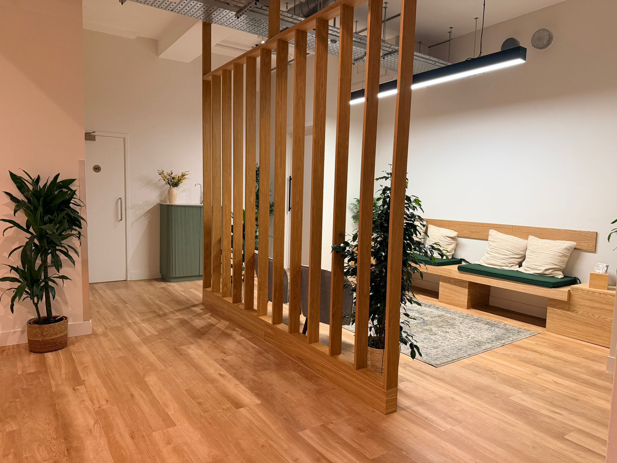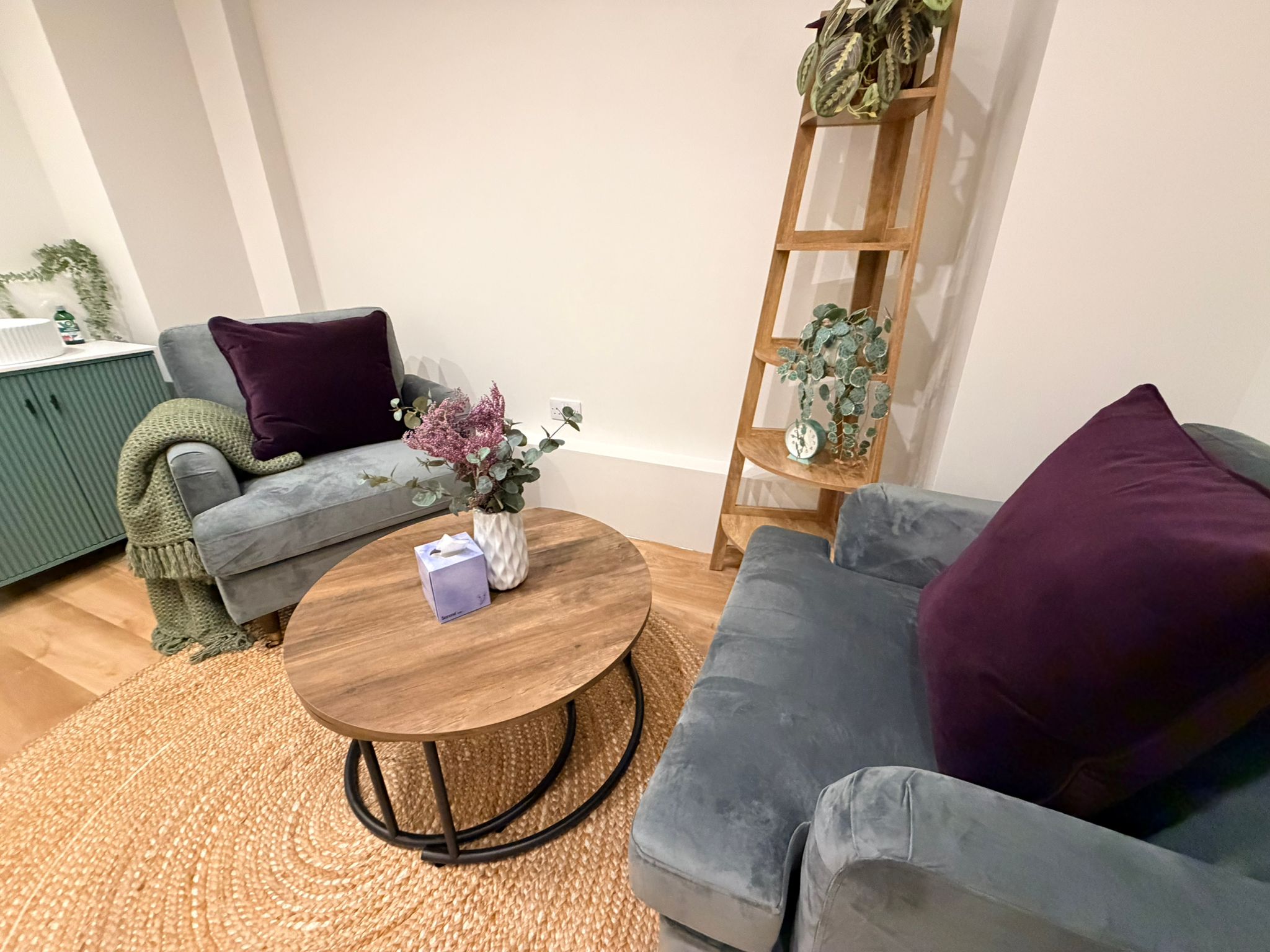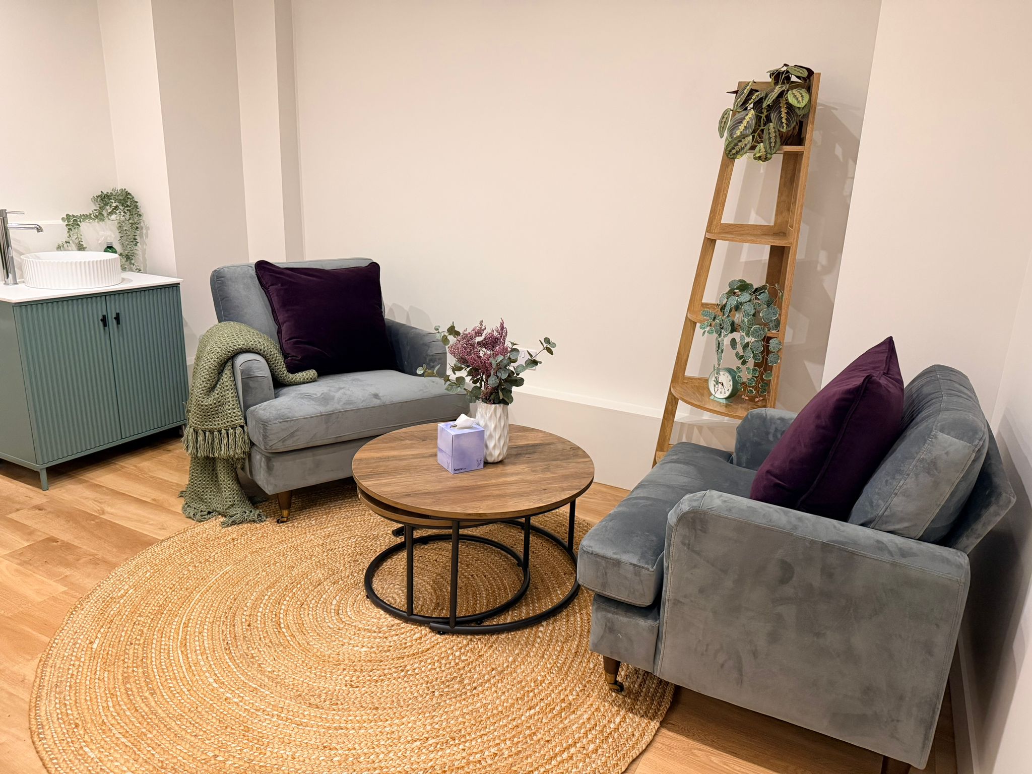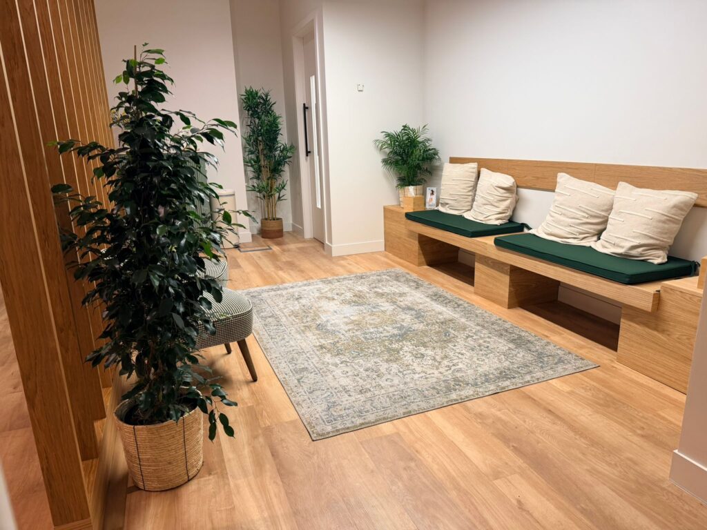 All good-sized treatment rooms, modern, bright and airy. All with natural light, sink, desk, 2 chairs and therapy Plynth couch. All with a contemporary and welcoming feel. Dedicated Talking Therapy rooms as well as dedicated Physical Therapy rooms.